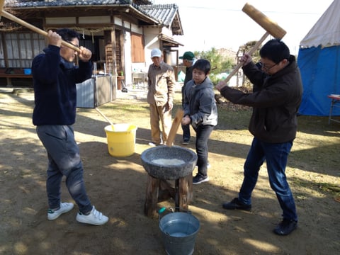 お餅つき体験もできます。力を合わせて美味しいお餅をつきましょう!!