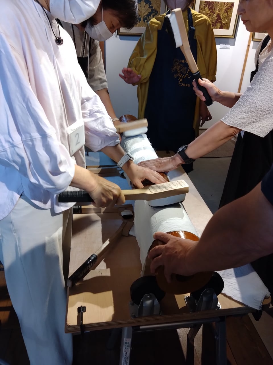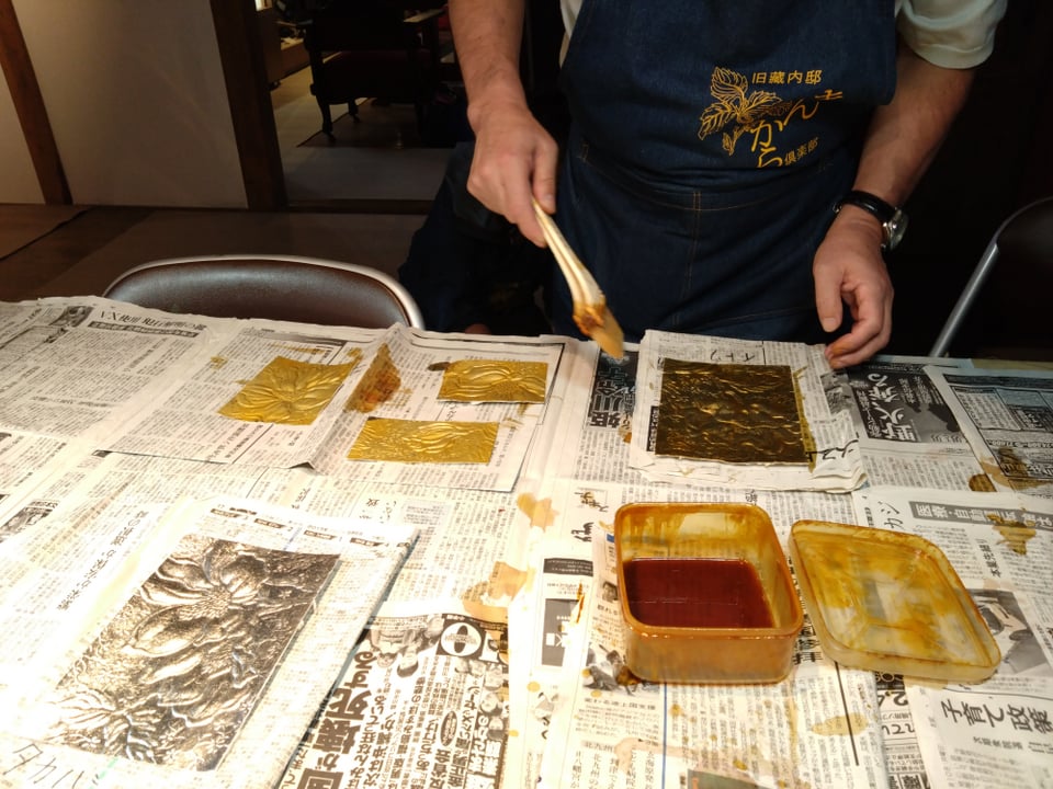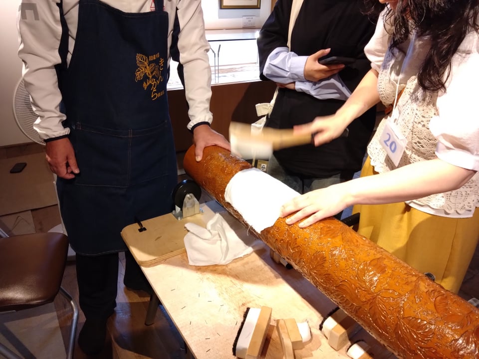 作業時間は約半日ですが、完成した金唐革紙を手にした参加者の笑顔がとても印象的でした。