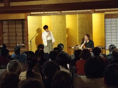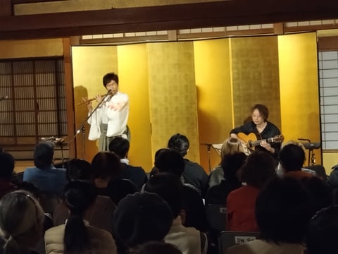 続いてギタリスト、柴田亮太郎さんの登場。柴田さんの弾くギターの柔らかい優しい音色と狩野さんの篠笛が旧藏内邸全体に響き渡りました。