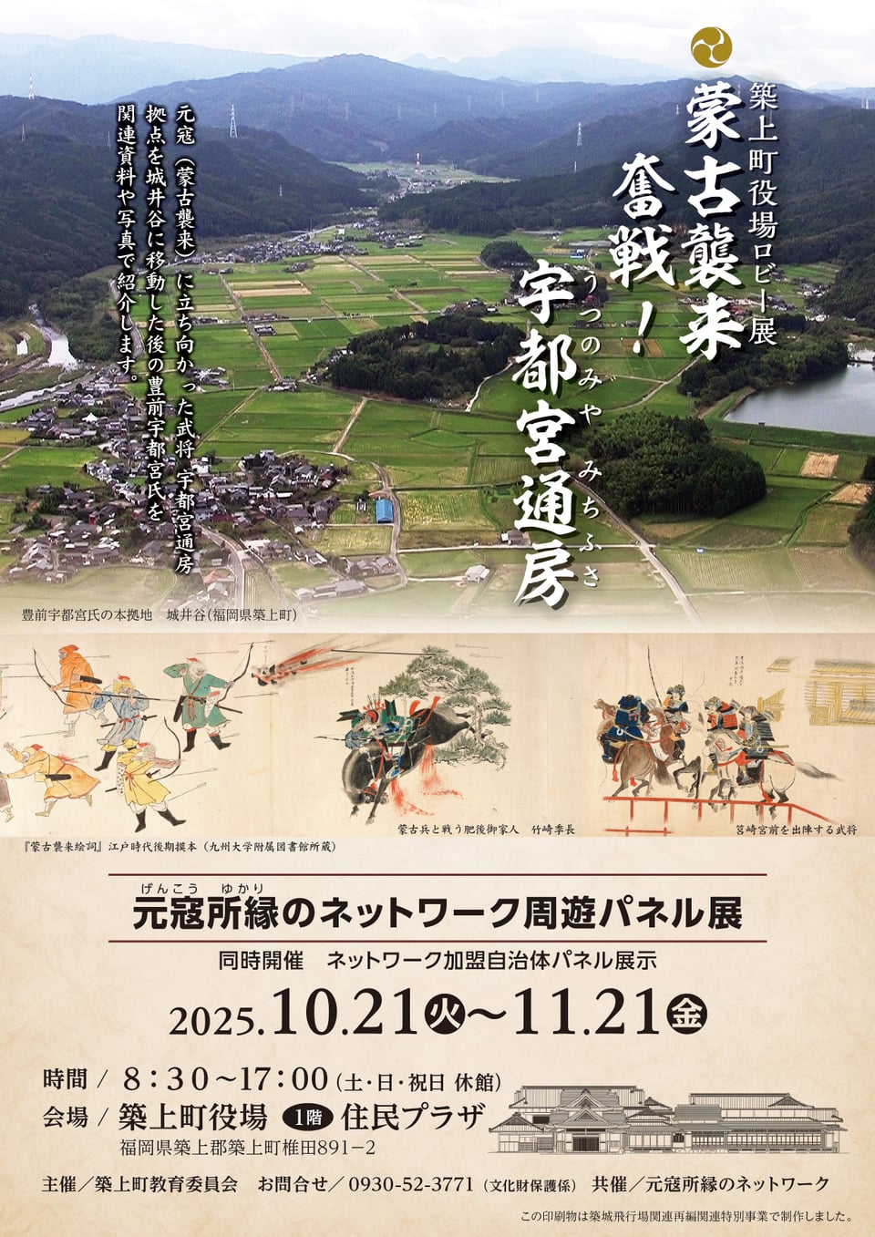 10/21(火)~11/21(金)役場ロビー展示「元寇所縁のネットワーク周遊パネル展-蒙古襲来 奮戦!宇都宮通房-」