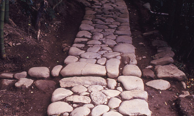 発掘調査で見つかったこの石畳は幅 1.2m、全長 120mにわたり敷石されていました。